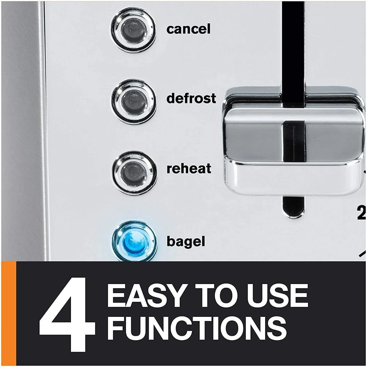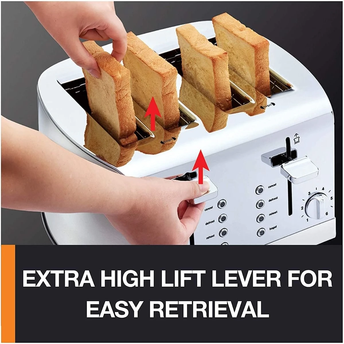 - High lift lever for easy removal of low sitting toast/bagels