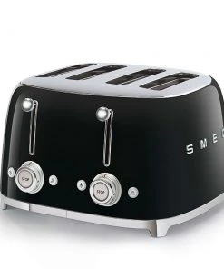 Designed in Italy and inspired by 1950s styling, the Black 4-Slot Toaster from SMEG delivers delicious toasted bread, bagels, and more while making a statement on your countertop! Four 1.4” slots accommodate thick bread, bagels, and even sandwiches with the SMEG sandwich holder accessory (not included).