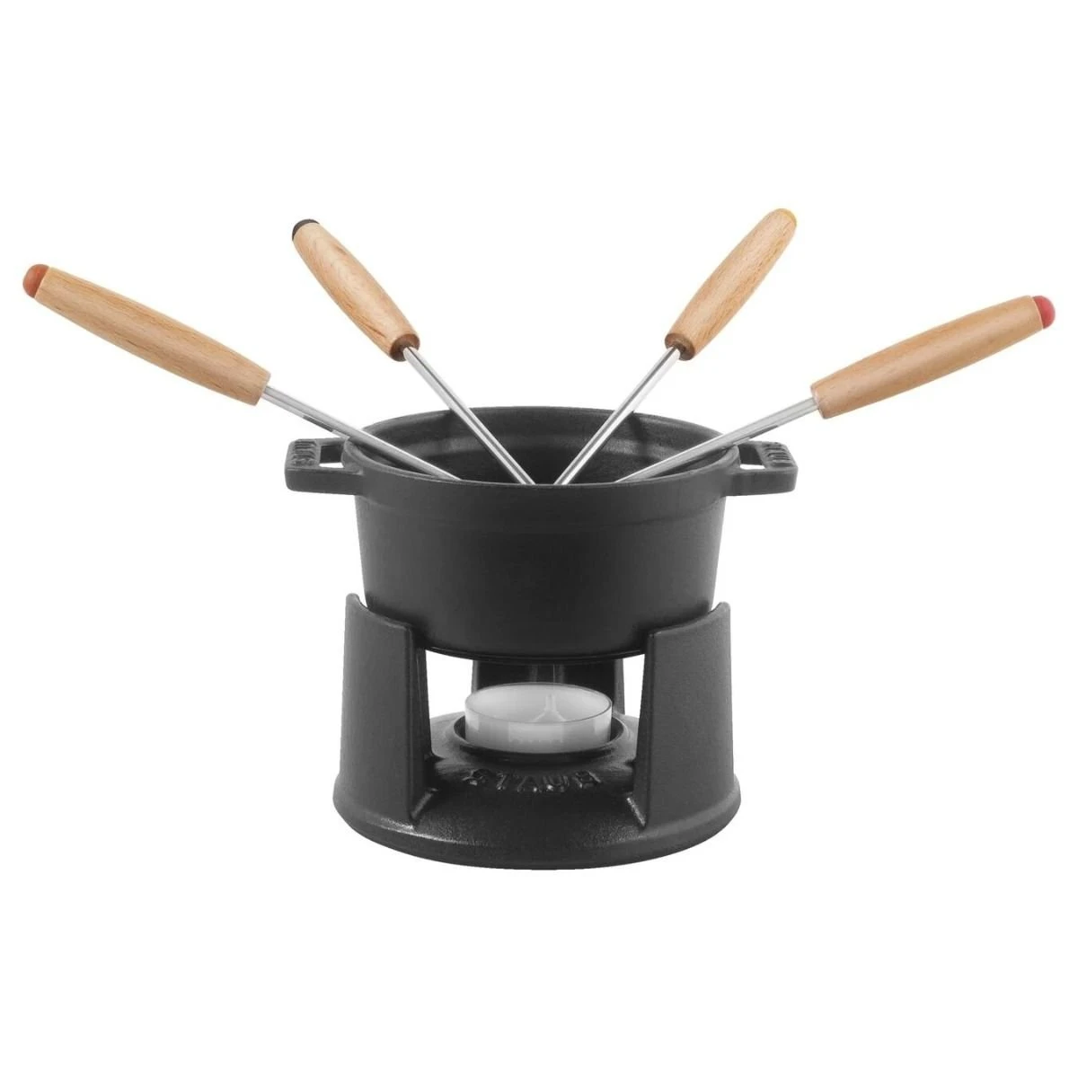 Staub Mini Cast Iron Chocolate Fondue Set Features: