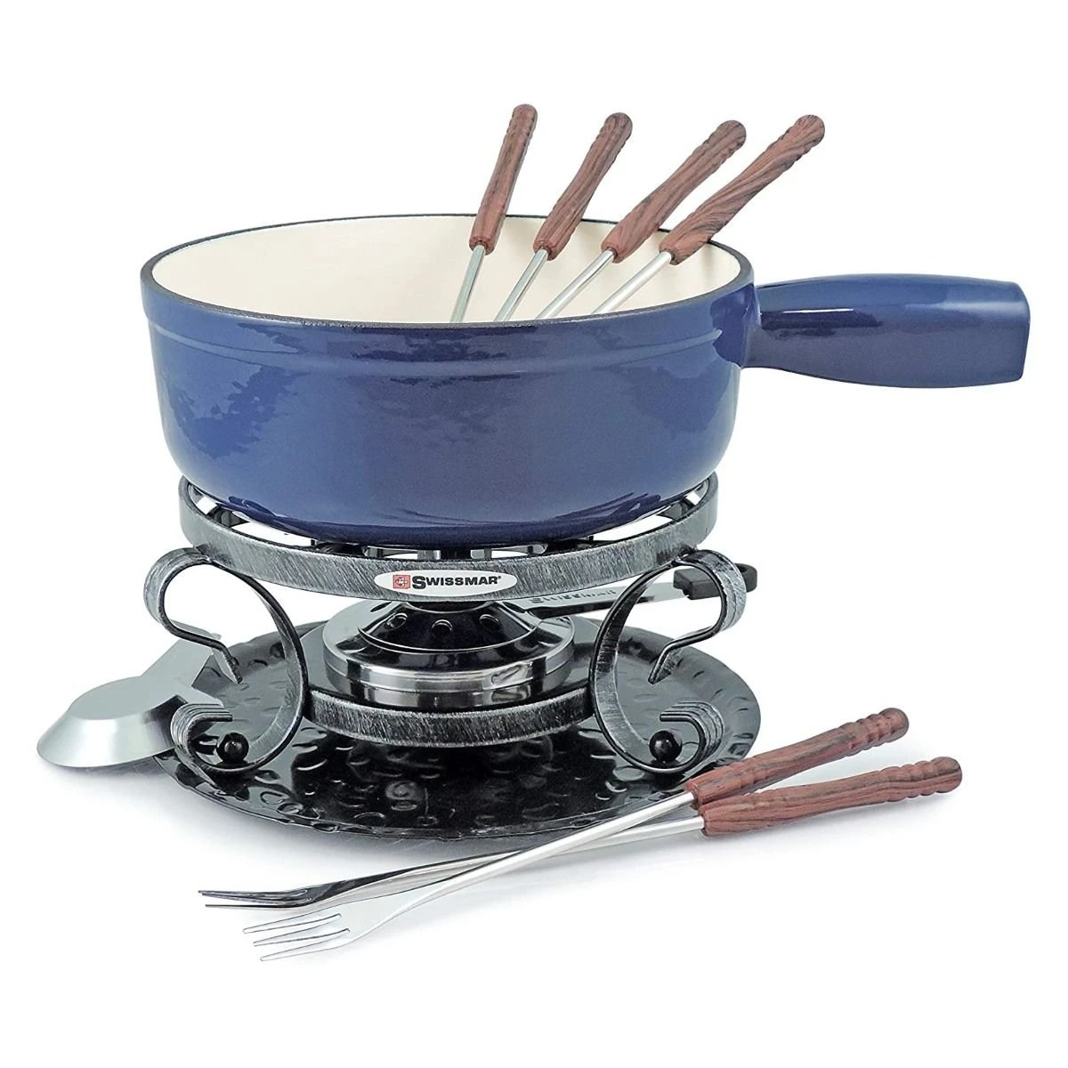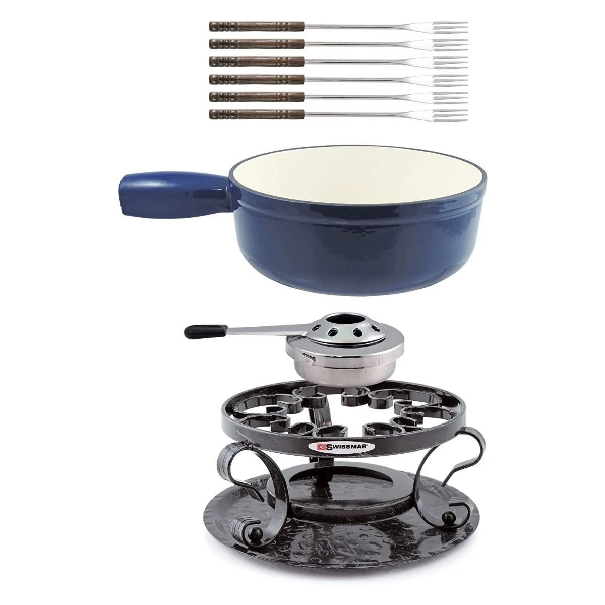 Swissmar Lugano 9-Piece Cast Iron Fondue Set (Deep Blue) Features: